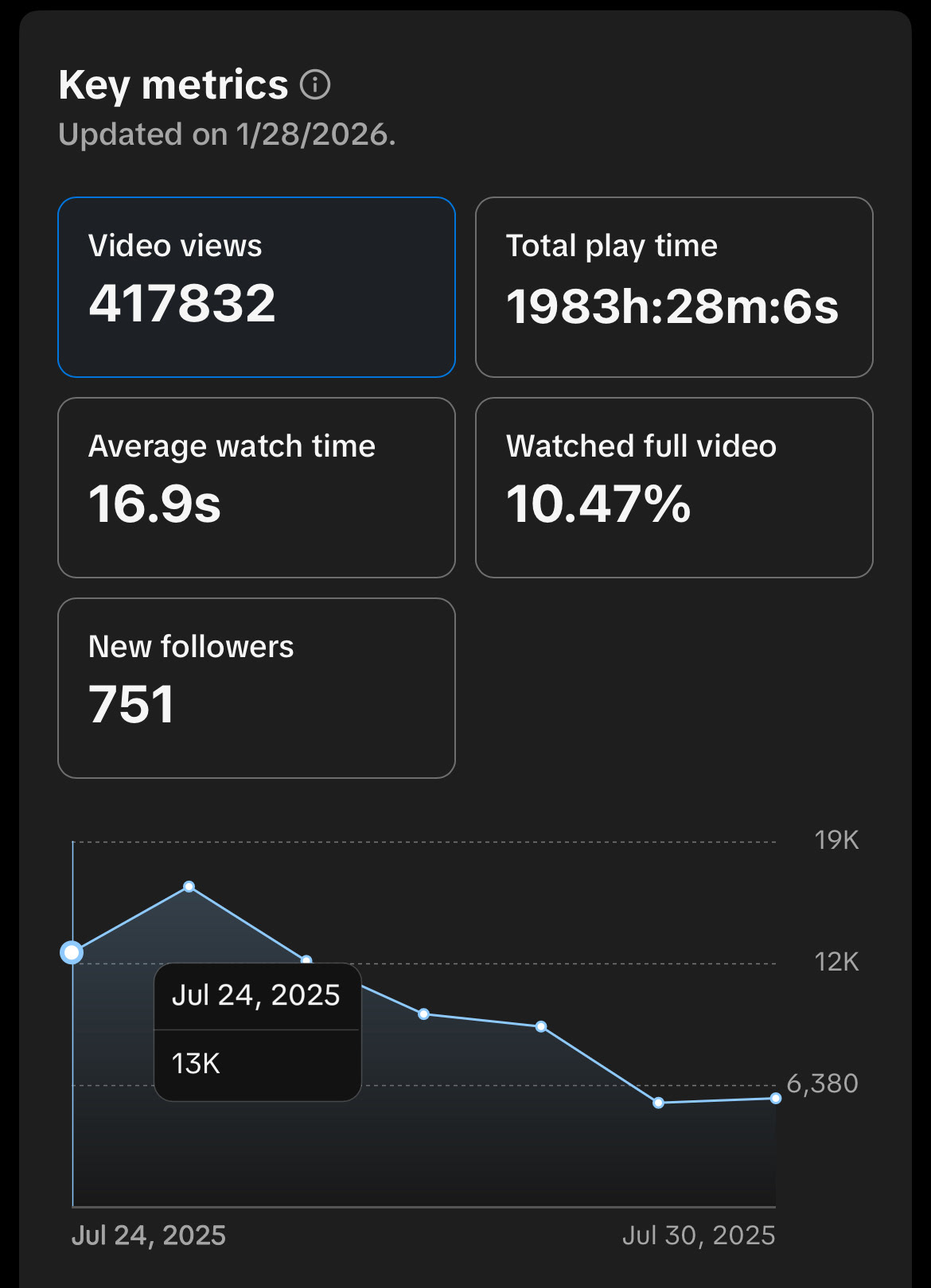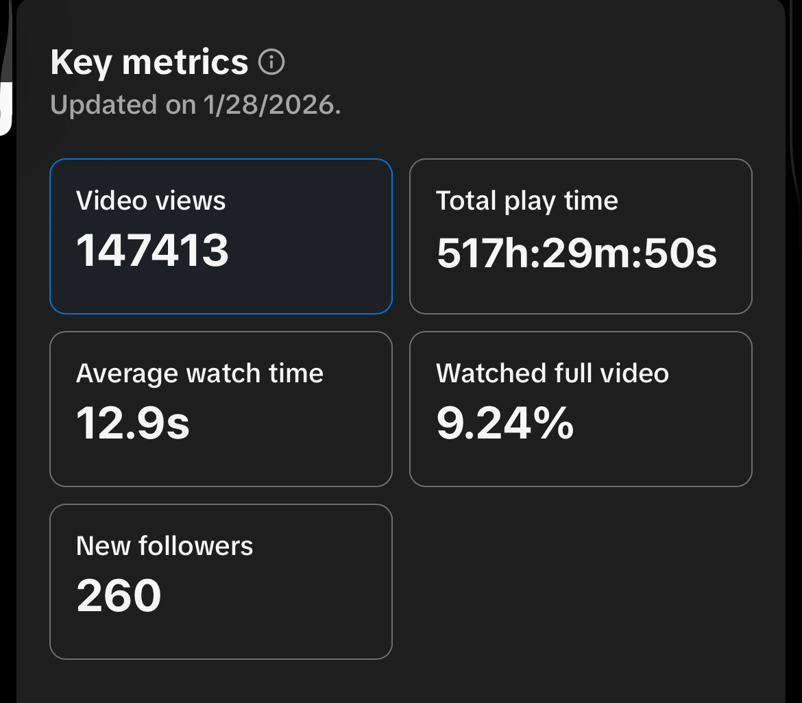 Unfortunately, this never really took off. Most of the edits I was doing would either get copyright banned immediately or just never really take off. It was a style that was clearly not working, despite my numerous attempts. So, after about two weeks of trying, I gave up on posting. I had amounted less than 20 likes across the board.